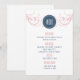 This modern "Art Deco" style wedding menu is perfect for the modern wedding. Beautiful swirls and a monogram are featured on this menu. This menu is in a pink and light navy blue. Gatsby Style
