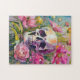 Modern Art Still Life Abstract Skull and Flowers Jigsaw Puzzle