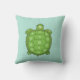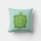 Modern Artistic Green Tortoise on Light Teal Throw Pillow