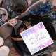 Modern artistic wedding paper napkin design featuring an abstract grunge background in purple and pink shades with modern and bold distress typography.