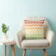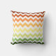 This modern throw pillow features a trendy chevron pattern in an autumnal colour palette with green, yellow, and orange hues.
