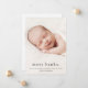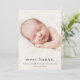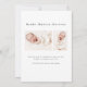 A sweet budget photo birth announcement featuring modern name and full bleed vertical portrait photo. The back has an additional 2 photo spots a large full name header and personal message from the family.