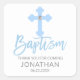 Modern Baby Blue Cross Baptism Boy Thank You Square Sticker