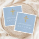 Personalized Modern Baby Blue Religious Cross Boy Baptism Napkins.