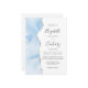 The left-hand edge of this elegant modern wedding invitation features a pastel baby blue watercolor agate border trimmed with faux silver glitter. The customizable text combines handwriting, copperplate and italic fonts in charcoal grey on a white background. The reverse side provides space for wedding details on a solid white background, along with a QR code guests can scan to visit your website and RSVP, which saves the cost of printing and mailing separate RSVP cards.