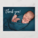 This postcard serves as a beautiful keepsake, capturing the special moments of your baby's early days. The modern design features black script handlettering typography, creating an elegant and stylish look. The word "thank you" is prominently displayed on the front, conveying your appreciation to your loved ones.