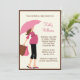 This pink and brown Baby Shower invitation features a cute silhouette of a pregnant woman with an umbrella and is just waiting to be customized with your details. This modern and elegant baby shower invitation is perfect for any mom to be. © BabyStar Design