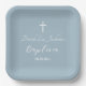 Modern Baptism Christening White Cross Dusty Blue Paper Plate