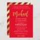 Modern Bar Mitzvah boy modern red + gold Invitation