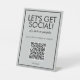 Easily personalize the text and QR code with your information. Font type, size, and colour can all be changed to fit your needs. The background colour can also be customized to match your decor.
