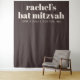This personalized bat mitzvah photo backdrop features a rich brown background with ivory cream typography and a bold, name-forward layout. Customize the name, date, and location to create a polished backdrop for photos, entrances, or party spaces. The large-scale design makes it easy for guests to gather and capture memories throughout the celebration. A statement piece that ties the event decor together and looks great in photos.
