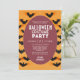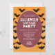 Set the mood for a night of fright with this clean and organized bat pattern layout. The high contrast between maroon and orange ensures your event details are easy to read and stylish.