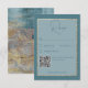 This wedding response card design features a blue and gold abstract beach and water back, with a solid teal front and faux gold glitter framed text area. Modern and unique, it's perfect for a beach or waterside wedding. Created by Simply Farmhouse Press, it's part of the Modern Beach Abstract Teal & Gold Wedding suite.