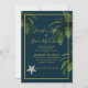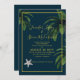 Modern Beach Navy Blue Gold Palm Tree Wedding Invitation
