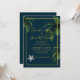 Modern Beach Navy Blue Gold Palm Tree Wedding Invitation is a classy design for a summer theme wedding. It is designed with a customizable dark navy background and pretty emerald green palm tree leaves on right front side of invitation. The lettering is in faux gold colour. Names are in trendy hand lettered script. Easy template made available to fill in your wedding details.