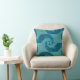 Modern Beach Teal Turquoise Wave Pattern and Wood Throw Pillow