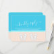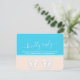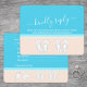 Compliment beach wedding invitations with chic modern RSVP cards. All text is simple to customize or delete as needed. Card includes meal choices, food allergies, song request, and option to respond via website or email. Pastel coral and light turquoise blue design features bright white typography, cute seashells, monogrammed flip flops on an abstract modern minimalist beach, and customizable title that reads "kindly reply." The hand written style script calligraphy resembles sky writing above the ocean. This stylish tropical response card is an elegant way to request guests to RSVP to your special day celebration in paradise.