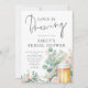 Printable Beer and Eucalyptus Love is Brewing Bridal Shower. Available digitally and printed. The word Brewing is in a modern non-editable script. The rest of the text you can easily personalise. With a watercolor beer and euclyptus leaves illustration.