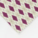 This colorful fleece blanket features a geometric argyle pattern in beige and purple shades.