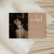Modern Beige Wedding Photo 'We Eloped' Announcement. Personalize with your favourite wedding photo, your elopement message for family and friends, and bride and groom initials on the back.