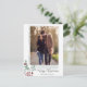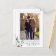 A modern calligraphy Christmas photo postcard template featuring a watercolor berry leaf branch. THE SAMPLE FAMILY PHOTO IS NOT INCLUDED. REPLACE WITH YOUR OWN PHOTO BEFORE ORDERING.