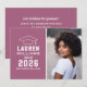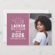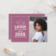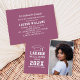 Announce your high school or college graduate in style with this graduation announcement and party invitation. Two-sided card features a senior portrait of the graduate with grad cap and simple and modern white typography design. Berry pink / red background can be changed to a different colour with the "Customize It" feature, then Edit / Background to select another colour.