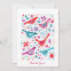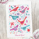 Modern and contemporary watercolor birds and flowers pattern in vibrant teal green, magenta pink and red on a white background. Original art by Nic Squirrell. Change the Thank You message and text and names on the reverse to personalize.