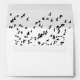 These beautiful pre-addressed wedding envelopes feature two birds on the back flap (black over a white background). The inside contains a matching flocking birds design.