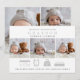 Modern birth announcement card with gray stats icons. This design features three photographs on the front and back of the card and is a lovely way to announce the birth of your newborn baby.