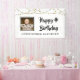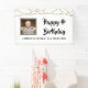 Celebrate any age birthday with this personalized photo banner sign with a photo, your custom text and string lights. PHOTO TIP: Choose a photo with the subject in the middle and/or pre-crop it to a square shape BEFORE uploading and use the CHANGE tab in the PERSONALIZE section. CHANGES: Change the background colour, choose a styled graphics background or change the text font style, colour, size and placement by clicking CUSTOMIZE FURTHER in the PERSONALIZE section. Contact the designer via Zazzle Chat or makeitaboutyoustore@gmail.com if you'd like this design modified, on another product or would like coordinating items.