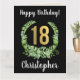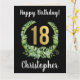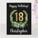 Happy 18th Birthday Modern Gold Wreath Name Card. Customize the name of the recipient on the front and the greeting messages on the front and inside.