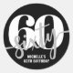 Introducing a simple and modern 60th birthday party round sticker, perfect for celebrating this milestone in style. The design features a bold black background with a prominent "60" and "Sixty" displayed in the centre as the main focal point. Just underneath, the birthday person’s name and age are showcased again for a personalized touch. The text combines a mix of modern and script fonts in white, making the design striking yet minimal. The background colour and fonts can be customized to match your party theme.