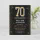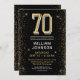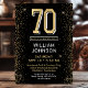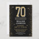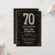 This fabulous black and gold men's 70th birthday surprise party invitation featuring the number 70 in gold with modern fonts and gold glitter sides would be perfect for asking people to join you as you celebrate the man in your life's 70th birthday. It is traditional and classic while being fresh, modern and contemporary. To see your unique invitations select "Personalize this template" and type in your information. It's super easy!