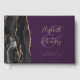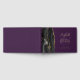 This elegant wedding guest book features a black watercolor agate design trimmed with faux gold glitter. Easily customize the gold-coloured text on a purple background, with the names of the bride and groom in whimsical handwriting calligraphy over a large ampersand. Add additional text of your choice to the front and spine.