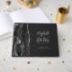 Modern Black Agate Silver Script Dark Guest Book