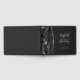 This elegant wedding guest book features a black watercolor agate design trimmed with faux silver glitter. Easily customize the silver grey text on a dark off-black background, with the names of the bride and groom in whimsical handwriting calligraphy over a large ampersand. Add additional text of your choice to the front and spine.