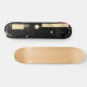 This contemporary skateboard design combines a sleek black canvas with refined gold geometric elements for a truly modern and abstract look. Its minimalist layout exudes sophistication, making it an ideal choice for skaters who value artistry and bold aesthetics in their gear. Perfect for street skating or as a statement piece, this deck blends urban style with creative expression for a standout, polished appearance.