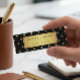 Modern Black and Gold Glitter Graduation Name Card
