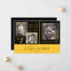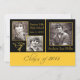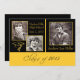 Modern Black and Gold Graduation announcement feature a black and gold design including three photo templates. Use the custom template to insert your own photo and wording. Back side of announcement features a black background.