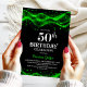 Invite your friends and loved ones to your 50th birthday with this modern black and green birthday party invitation. The customizable text area in this invitation template allows you to effortlessly include all the necessary details for your special birthday celebration, including the date, time, venue, and RSVP information. A variety of paper types and corner styles are available for your unique invitations, along with the option to download if you prefer a digital format.