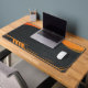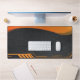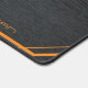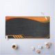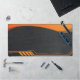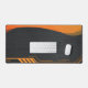 Modern Desk Pad with a black brushed background and orange accents. Personalization in an orange sans serif font .