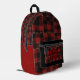 Modern Black and Red Buffalo Plaid Monogram Name Printed Backpack