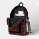 This backpack features a modern black and red buffalo plaid pattern with bold, clean lines and a timeless rustic feel. Customize your own Monogram Name. The classic checkered design blends farmhouse style with a contemporary edge. Perfect for those who love minimalist, outdoors-inspired, and cozy seasonal aesthetics. A stylish back-to-school choice with a classic plaid look that never goes out of style.