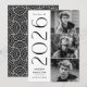 Celebrate the Class of 2026 with this classic black and white 3 photo graduation announcement featuring bold vertical “2026” lettering and a clean, minimal layout. The graduate’s three photos are presented in a streamlined stacked arrangement for a sharp, contemporary look that works beautifully with both color and black and white images. Personalize with the graduate’s name and school for a tailored finish. The patterned reverse adds subtle graphic detail while maintaining a modern, timeless feel. A versatile photo collage graduation announcement suited for high school or college seniors.