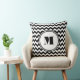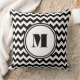 Modern Black And White Chevron Monogram Throw Pillow
