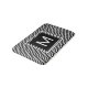 A modern black and white chevron pattern bathmat. Make it personal by adding your own initial to the monogrammed square.