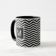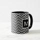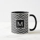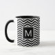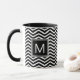 A modern black and white chevron pattern mug. Make it personal by adding your own initial to the monogrammed square.