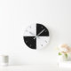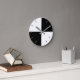 Modern black and white no numbers Round Clock. It showcases colour blocks of black and white and lines that indicate the hours.