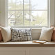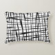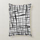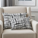 The accent pillow is a minimalist piece, showcasing unique black and white line art in an elegant, contemporary design, perfect for modern office or home decor. Its intriguing fenced design adds a touch of sophistication.