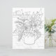 Modern black and white floral illustration bouquet with water can, perfect stationery that you can use as colouring page on one side.